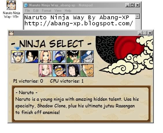 Pada kesempatan kali ini, Saya akan Share game Naruto. Game ini Spesifikasi tidak terlalu besar. Sobat bisa main game ini buat nyantai-nyantai, Refresing atau waktu luang. Dalam Game ini terdapat tambahan 4 Karakter asli,  Tahap permainan, dan Kesehatan disesuaikan.